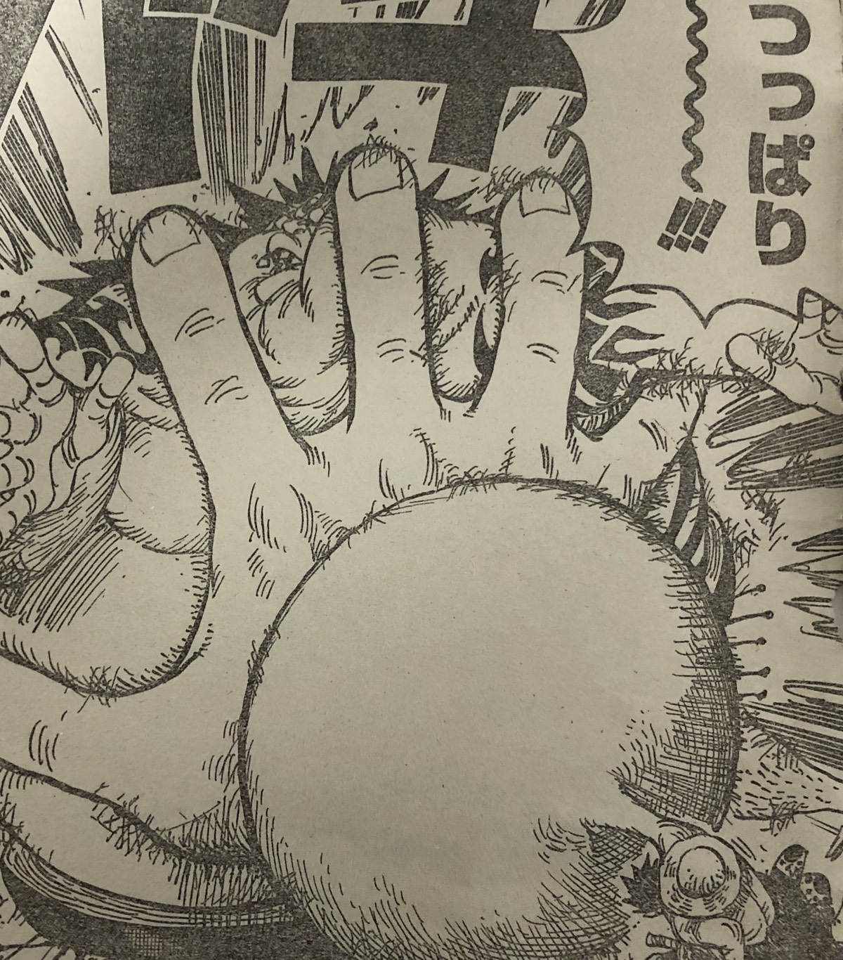 するとすかさずルフィがゴムゴムの突っ張りで対抗します。