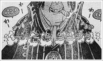 その能力はシロシロの実の城人間であり、体中が城になっているために、たくさんの兵隊や武器を隠し持つことが可能に。